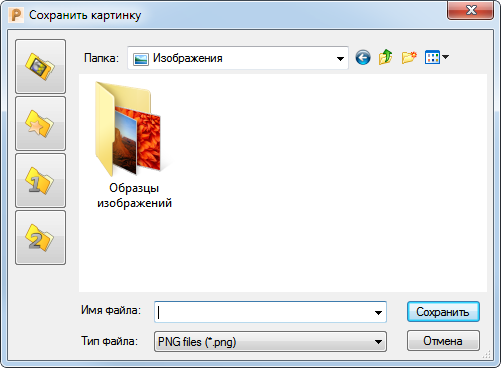 Вы можете сохранить картинки в форматах PNG (*.png), JPEG (*.jpg) или Bitmap (*.bmp).