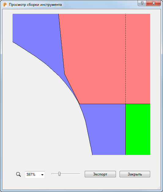 Экспорт — Нажмите, чтобы сохранить текущий вид сборки инструмента как графический файл. Если вы распечатаете изображение сборки 1:1, то сможете использовать его в качестве руководства при стачивании патрона для предотвращения столкновений.