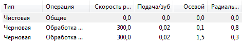 Таблица Режимы резания — эта таблица суммирует информацию, задаваемую в диалоговом окне Режимы резания. Чтобы изменить значение, дважды щелкните по строке.
