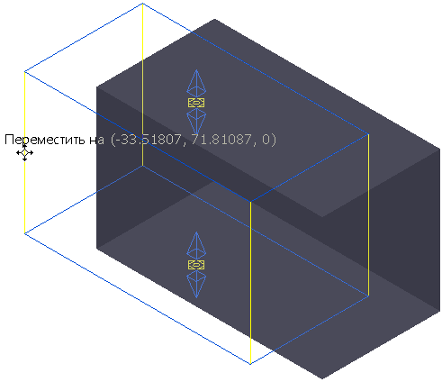 Перетаскивайте мышь для перемещения заготовки. Текст рядом с курсором показывает, насколько вы переместили заготовку (здесь -33.51807, 71.81087, 0).