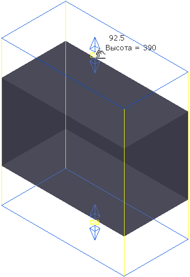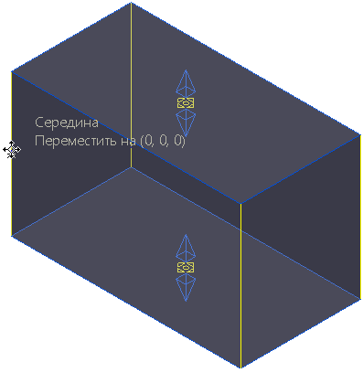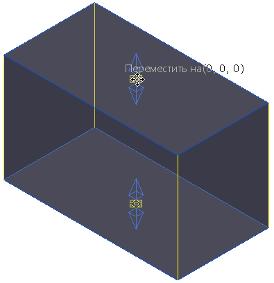 . Текст рядом с курсором показывает, где захвачен каркас (здесь середина), и насколько вы переместили заготовку (здесь 0, 0, 0).