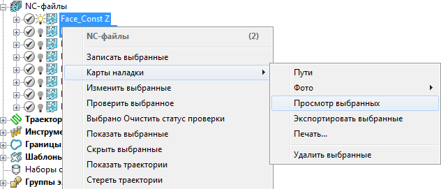 1. Выберите необходимые NC-файлы и в контекстном меню выберите «Карты наладки» > «Просмотр выбранных».