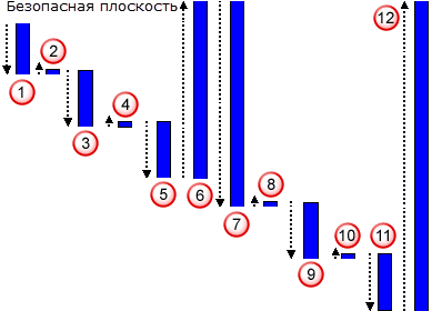 Вспомогательный шаг — Введите расстояние между следующими друг за другом шагами. Сверло поднимается из отверстия, лишь достигнув Глубины шага врезания, а не расстояния Вспомогательного шага. Таким образом, если Шаг врезания равен 3, а Вспомогательный шаг равен 1, то сверло движется следующим образом: