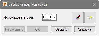 - Выберите вкладку Управление > панель Треугольники > Закрасить, чтобы открыть диалог Закраска треугольников: