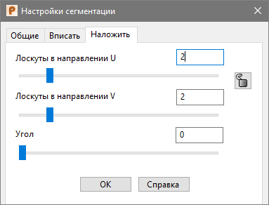 - Используйте слайдер Лоскуты в направлении V или введите точное значение, чтобы задать количество контрольных точек в направлении V, используемых для генерирования кривых поверхности в 2D-пространстве.