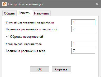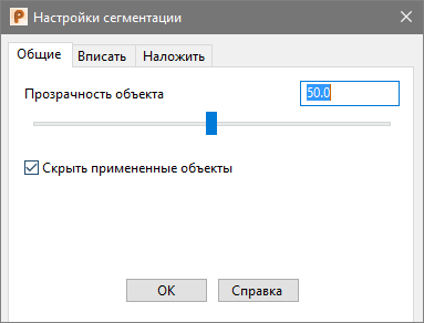 Диалог Настройки сегментации позволяет управлять стандартными настройками автоматической и ручной сегментации.