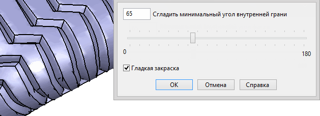 Сгладить минимальный угол внутренней грани, чтобы управлять внешним видом сетки, введите новое значение или используйте слайдер для уменьшения или увеличения гладкости граней.
