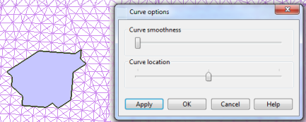 - Переместите слайдер Положение кривой, чтобы настроить положение кривой относительно замкнутой области. Существуют три положения: