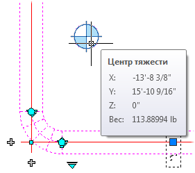 Для отображения сведений о центре тяжести и весе наведите курсор на обозначение.
