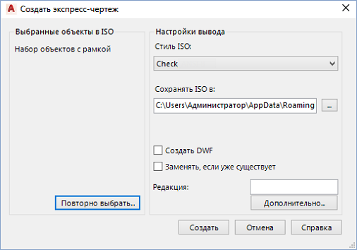 Диалоговое окно "Создание экспресс-вывода ISO"