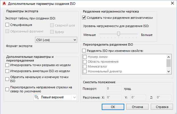- Задает количество объектов, которые могут отображаться на листе изометрического чертежа по сравнению с количеством создаваемых листов. При выборе высокого уровня нагруженности создается меньше листов с большим количеством объектов на каждом из них.