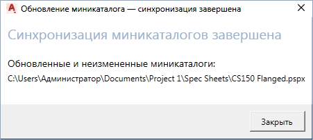 Прим.: Для того чтобы синхронизировать миникаталог с каталогом, файл миникаталога должен быть закрыт; кроме того, необходим эксклюзивный доступ к файлу миникаталога.