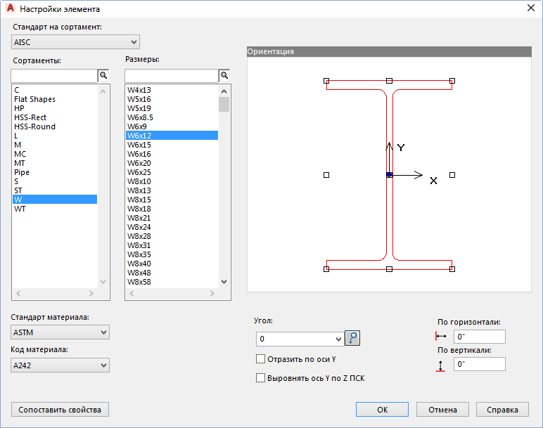 В списке "Стандарт материала" выберите требуемый стандарт материала, который будет использован для новых создаваемых элементов.