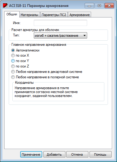 На вкладке «Общее» можно задать основные параметры армирования плиты и оболочки.