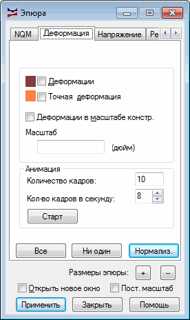 В этом окне выбирается способ представления деформации конструкции от приложенной нагрузки.