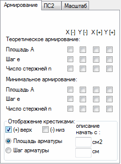 Прим.: Если загрузить проект, выполненный в более ранней версии, с результатами расчета по теоретическому (требуемому) армированию плиты или оболочки, то в диалоговом окне появятся дополнительные вкладки «Армирование» и «ПС2».