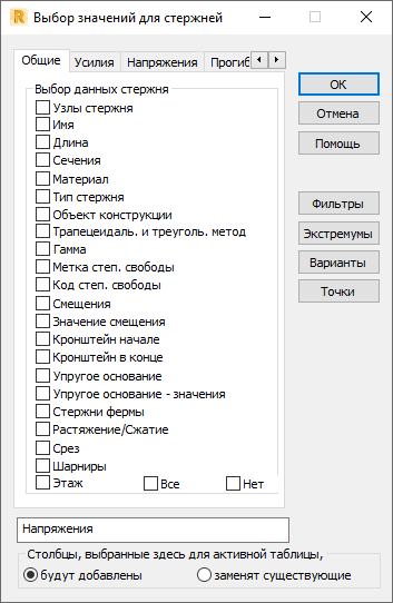 На вкладке «Общие» в диалоговом окне Выбор значения для стержней можно выбрать параметры представления.