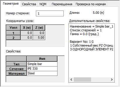 Перейдите на вкладку «Геометрия» в диалоговом окне Свойства стержня. Появится примерно следующее изображение.