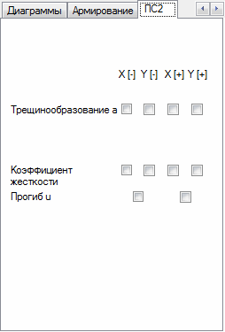 Прим.: Вкладка доступна, только тогда, когда используются нормы по железобетону, признающие вычисления в программе согласно ПС2.
