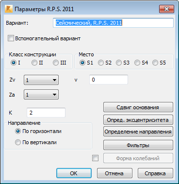 Типы расчета, а затем создайте новый сейсмический расчет. Появится следующее диалоговое окно.