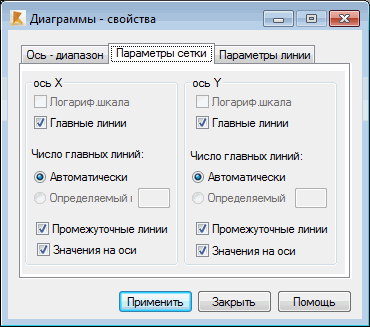 Как только в диалоговом окне Графики. Свойства выбрана вкладка "Параметры сетки", на экране появляется показанное ниже диалоговое окно.