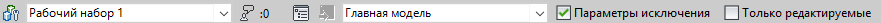 Чтобы ускорить процедуру работы с проектом, в котором организован совместный доступ, можно воспользоваться строкой состояния. Кнопка "Рабочие наборы" и раскрывающийся список "Активный рабочий набор" обеспечивают те же функциональные возможности, что и соответствующие инструменты (вкладка "Совместная работа"