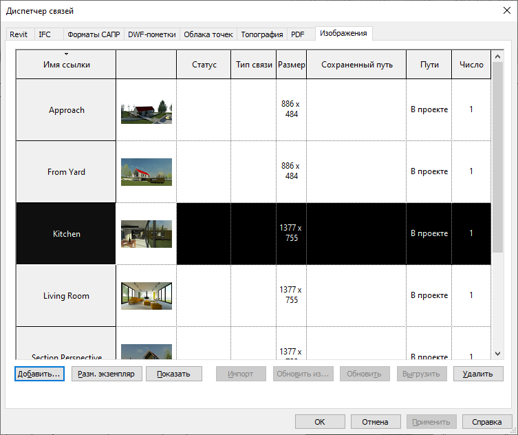 Кроме того, Диспетчер связей позволяет выгружать и заменять существующие связи и изображения в проекте Revit. Изменения, вносимые в Диспетчере связей, распространяются на изображения и файлы, связанные с файлами Revit других участников проекта.