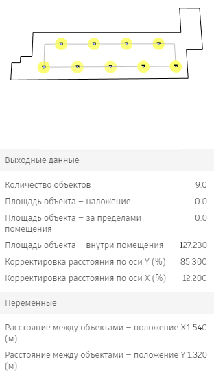 На основе этих результатов оптимальная компоновка имеет девять столов в два ряда.