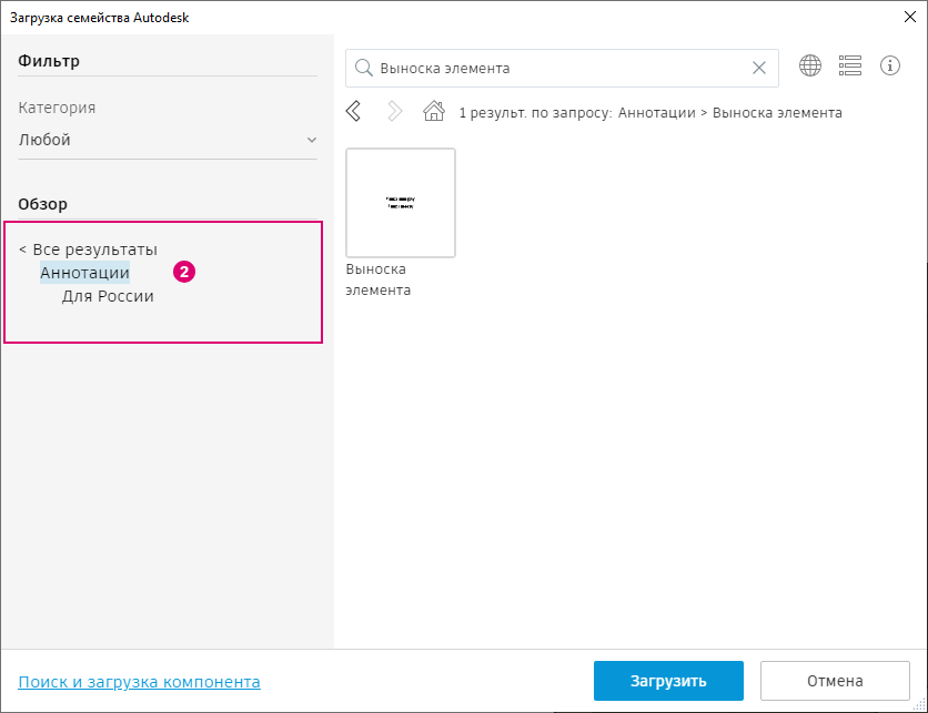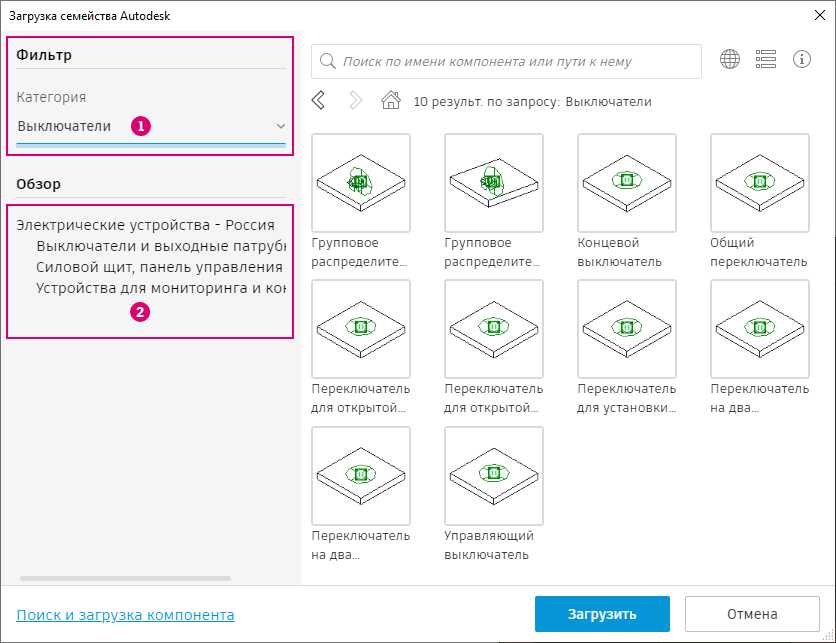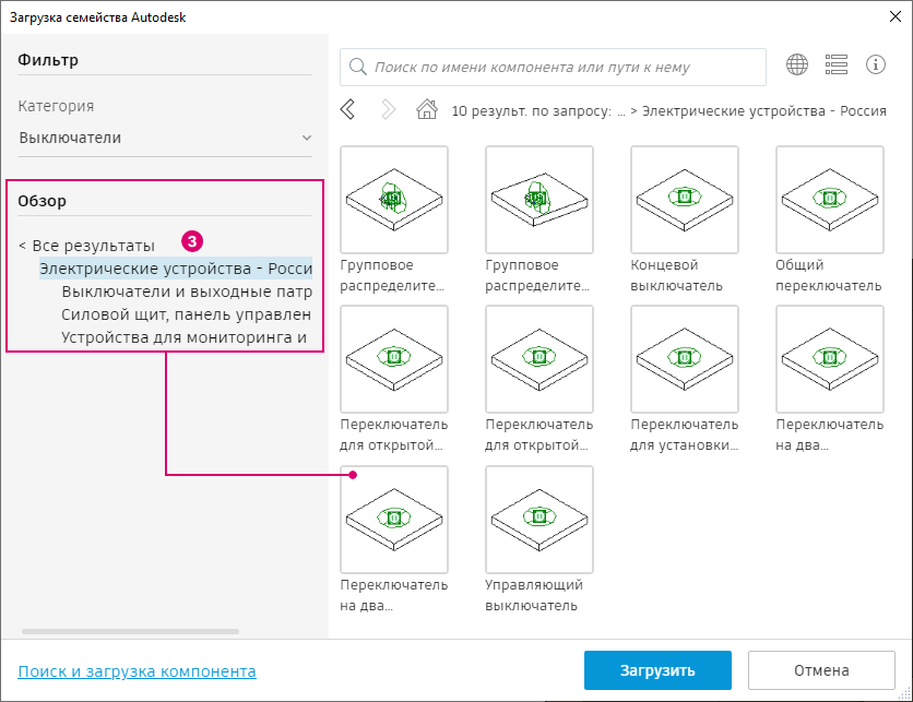 Поиск и загрузка примеров семейств Autodesk через облако.