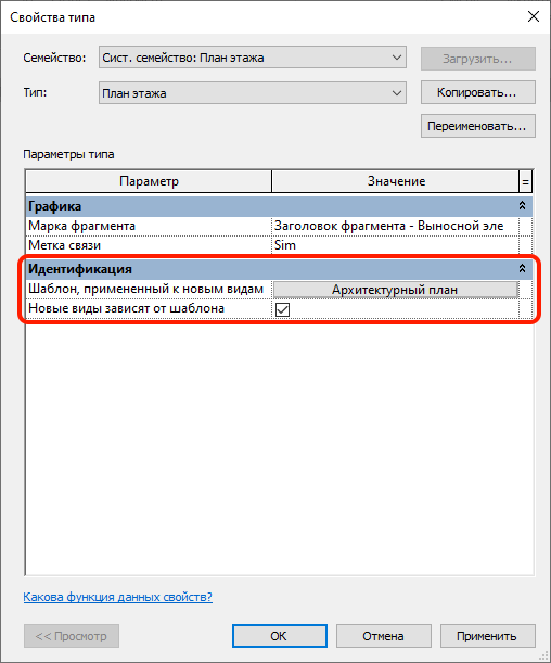 Выберите шаблон вида, который будет применяться при создании новых видов. Шаблон вида назначается в разделе идентификации типа вида. При создании нового вида такого типа шаблон будет назначен автоматически.