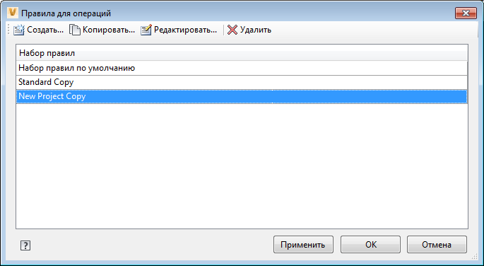 Для сохранения изменений и выхода из диалогового окна "Правила для операций" нажмите кнопку "ОК".