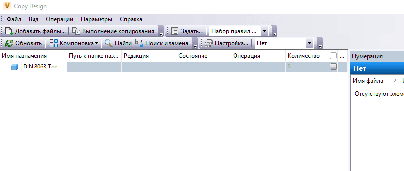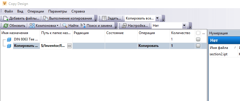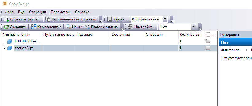 Выбранные файлы будут добавлены в основной вид диалогового окна Copy Design.