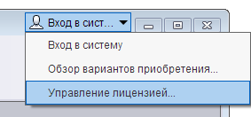 Список лицензий, занятых в текущем сеансе, можно просмотреть, выбрав пункт "Управление лицензиями" в раскрывающемся списке в верхней правой части Vault Client.