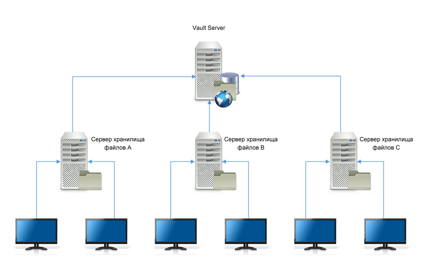 Первый способ заключается в создании централизованной базы данных для всех серверов. База данных для Vault может храниться на отдельном сервере, как показано на приведенном ниже рисунке.
