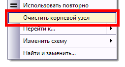 Можно удалить узел и все дочерние элементы из диалогового окна с помощью параметра «Очистить корневой узел» в контекстном меню. Данный параметр доступен только при выборе корневого узла.