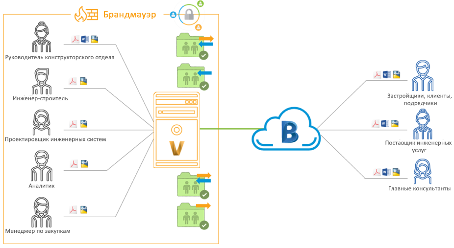 Возможность доступа ко всем связанным проектным данным для любого пользователя, а также предоставление доступа определенным участникам проектной группы к нужным проектным данным в нужное время определенным способом является ключевой проблемой в рабочих процессах, связанных со строительством. Используя Vault 2020, клиенты могут автоматически синхронизировать данные с BIM 360. Автоматическая синхронизация файлов позволяет избежать загрузки и выгрузки файлов, а также сокращает риск появления ошибок при передаче и сводит к минимуму необходимость в доработках. Администратор может управлять доступом к данным проекта, а также направленностью их передачи (в одну или обе стороны).
