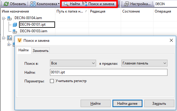 Можно выполнять процедуры поиска и замены в основной сетке.