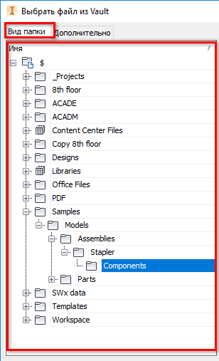 После применения этого обновления в диалоговом окне «Открыть из Vault» также доступен параметр «Вид папки», который упрощает навигацию по файлам.