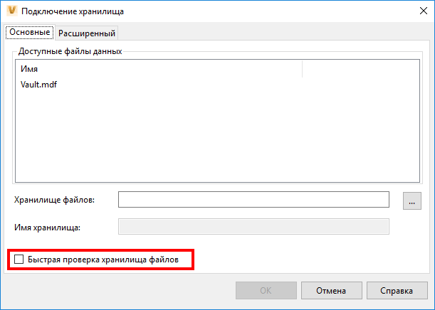 Добавлен новый параметр, который позволяет быстро проверять файлы при подключении Vault в консоли ADMS. При подключении хранилища или восстановлении резервной копии будет выполнена проверка хранилища файлов, при которой контрольная сумма в Vault сопоставляется с файлами в хранилище. На больших предприятиях этап проверки может занимать очень много времени. Этот параметр позволяет проверять только наличие файла без проверки контрольной суммы, что ускоряет проверку и завершение процесса.