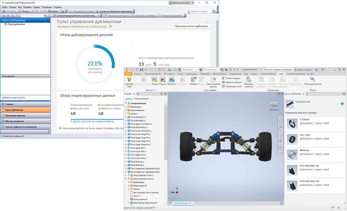 Мы добавили новый набор функций, который позволяет избежать использования повторяющихся деталей в проектах. Функция поиска дубликатов позволяет быстро и просто распознавать данные. Возможность сравнения геометрии в Vault значительно повышает производительность и, следовательно, ускоряет цикл разработки. Возможность замены рабочих файлов полностью законченными компонентами напрямую влияет на качество и прибыль от выпускаемых изделий.