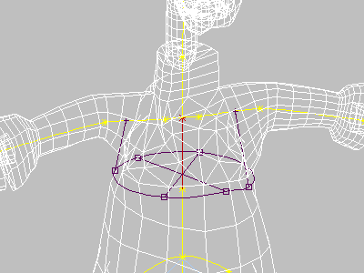 在“选择级别”组中,打开“控制点”。选择脊椎腱部横截面上的一个控制点,单击“附加”,然后单击手臂链接。此时,腱会从脊椎拉伸到手臂。