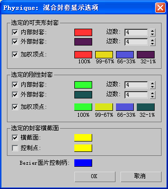 使用该对话框,可以在“封套”子对象级别定制 Physique 显示混合封套的方法。