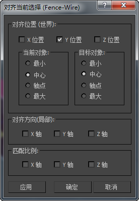 指定要在其上执行对齐的一个或多个轴。启用所有三个选项可以将该对象移动到目标对象位置。
