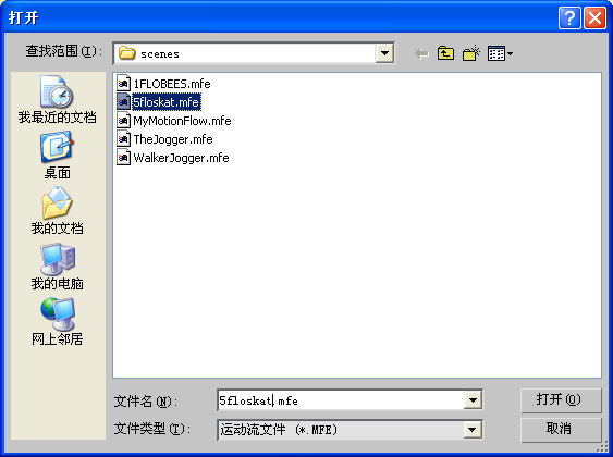 从“运动流”卷展栏保存、加载和附加 MFE 文件。