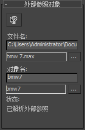 显示包含外部参照对象源的场景文件的路径和文件名。可以对此进行编辑以指向不同的路径和文件。