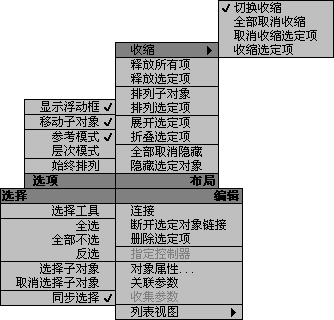 收缩会隐藏所有选定实体的外框,但保持排列和关系可见。此选项将显示一个子菜单: