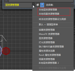 “本地场景资源管理器”子菜单。选择任何项目以切换相应的本地场景资源管理器。