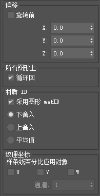 - 允许基于沿对象顶点的路径的百分比覆盖 UVW 坐标。单击以选择要覆盖的所需坐标。