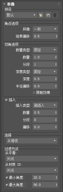 - 启用了“设置切角材质”时,应用到新多边形的材质 ID
