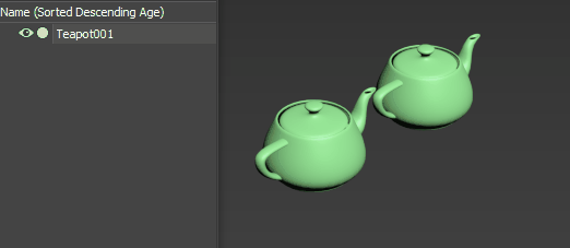 - 在以下示例中,Teapot001 是一个包含两个茶壶克隆的阵列对象。单击“Create Objects”后,将创建名为 Teapot001_001 和 Teapot001_002 的两个新对象,并隐藏 Teapot001。